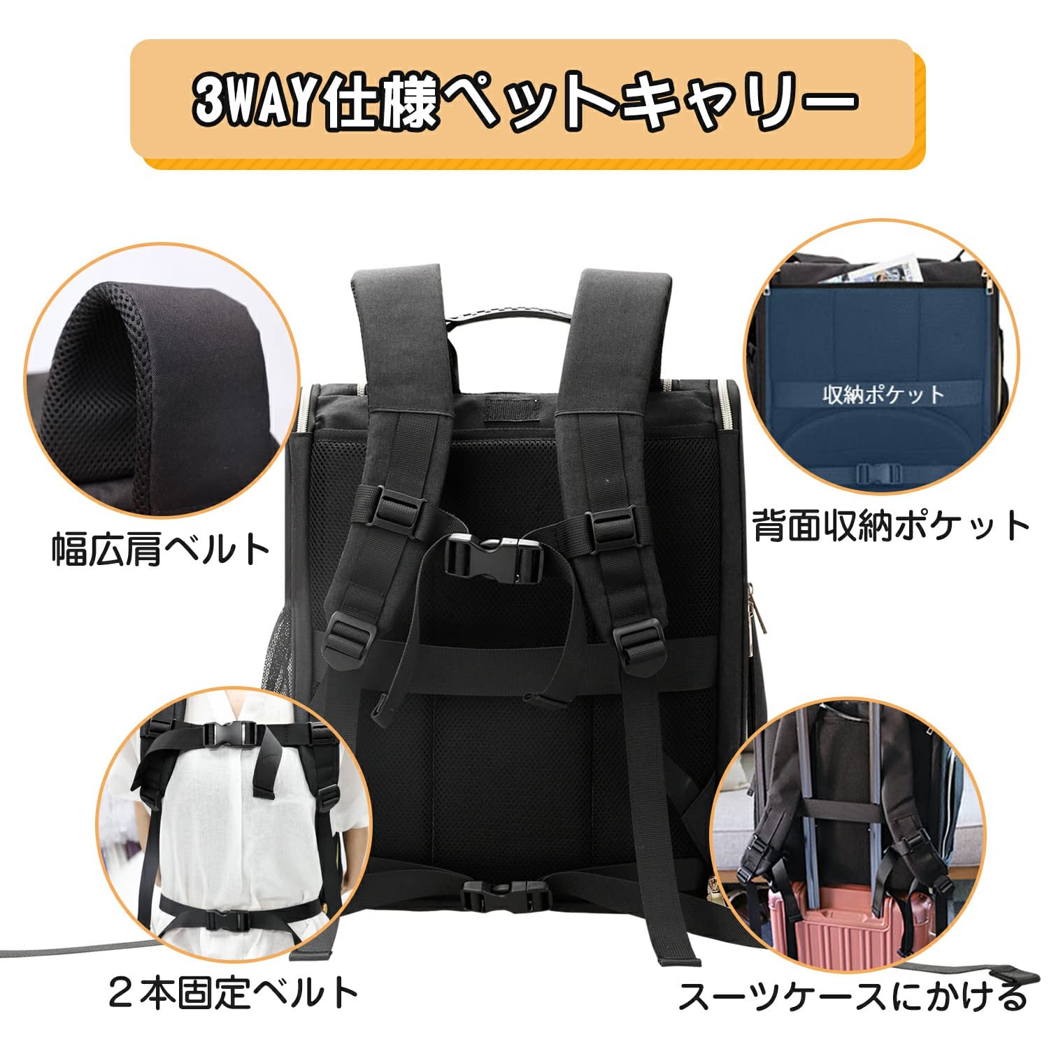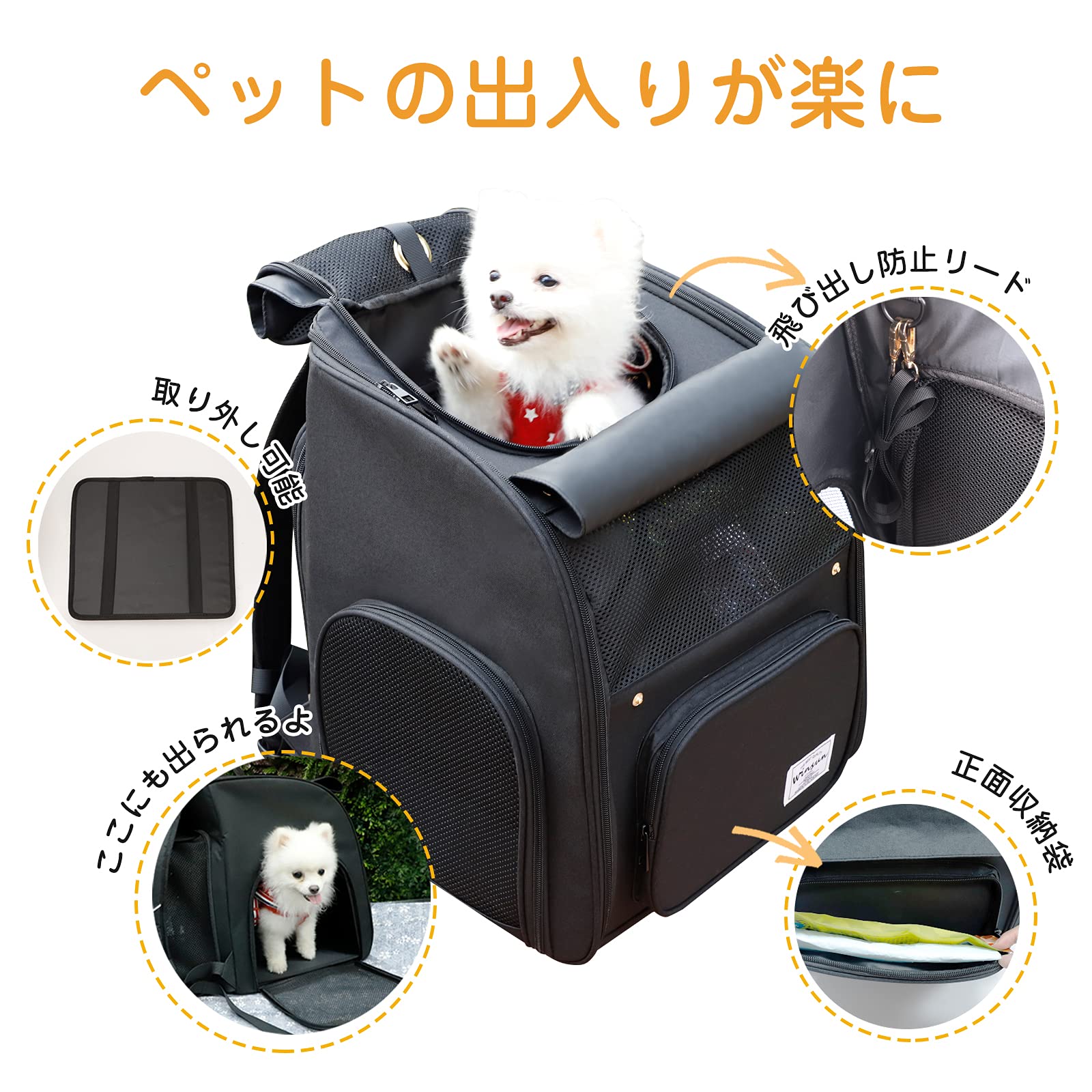 - 【優れた機能性】犬 キャリーバッグは底板にトイレシートやタオル等が挟めるゴム付き、取り出しできる構造でお手入れ簡単のペット バック。正面と側面も収納ポケットあり、クッション性のあるショルダーベルトで、長時間背負っても楽の猫 キャリー リュックです。